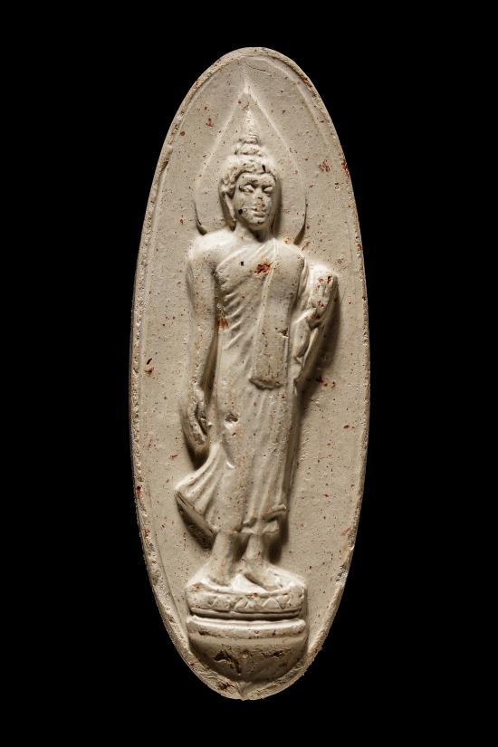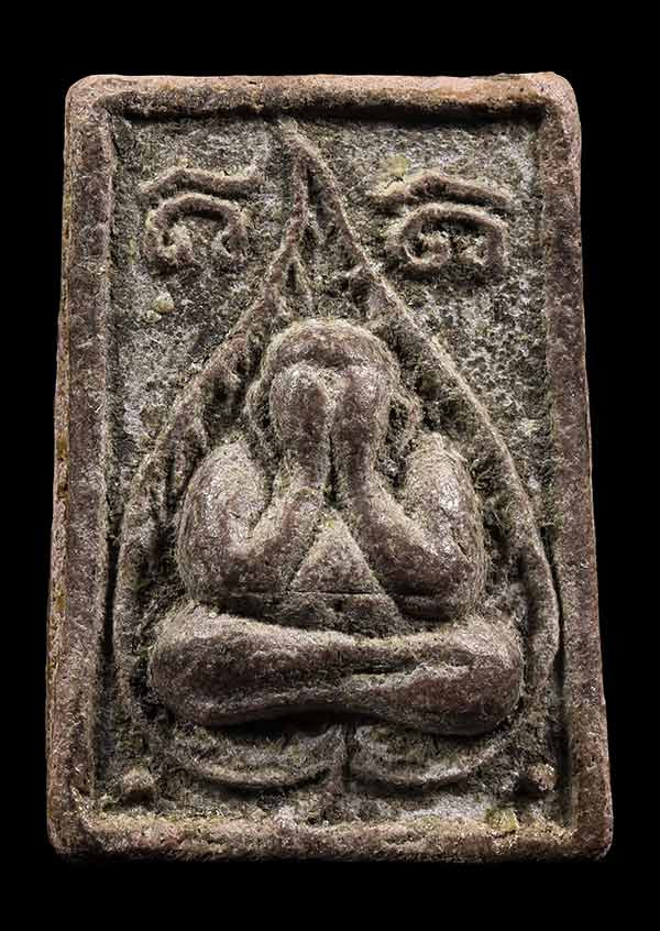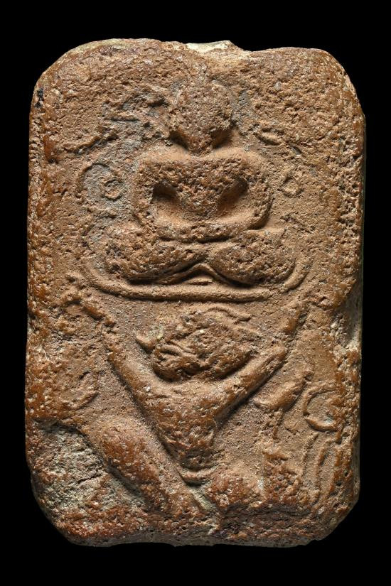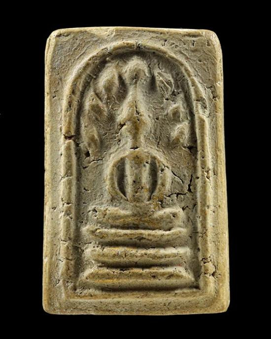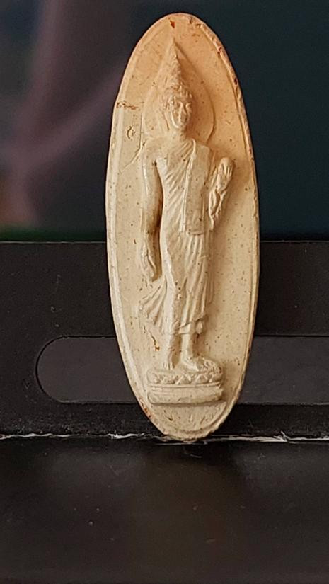 วัดใจ 40...พระโพธิจักร หลวงพ่อลี วัดอโศการาม พิมพ์ใบโพธิ์ เนื้อดิน ปี2500 พร้อมบัตรรับรองจีพระ |