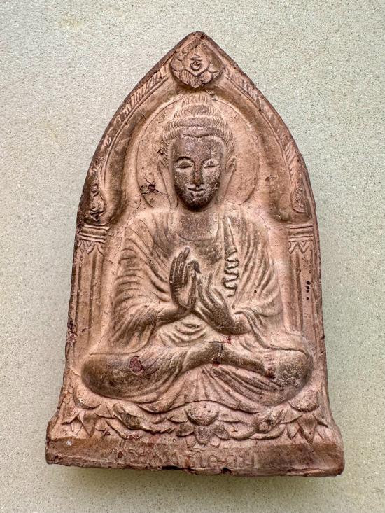 พระพุทธประทานพร เนื้อดินเผาผสมผงพุทธคุณ ปี พ.ศ.2520 หลวงปู่ดู่ วัดสะแก สภาพสวย นอนกล่อง |