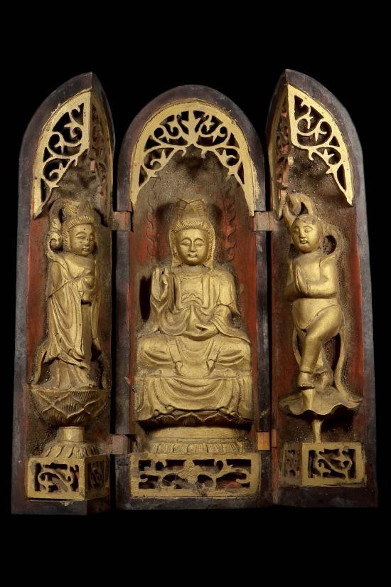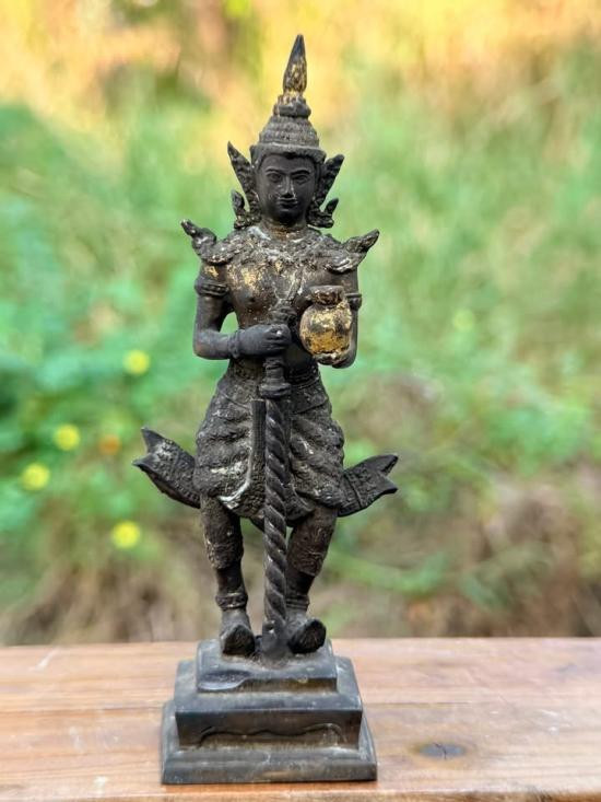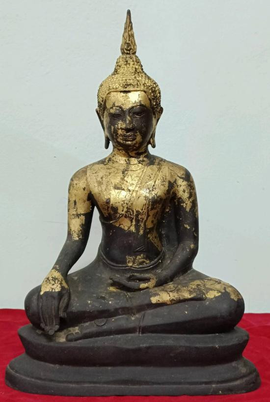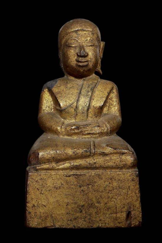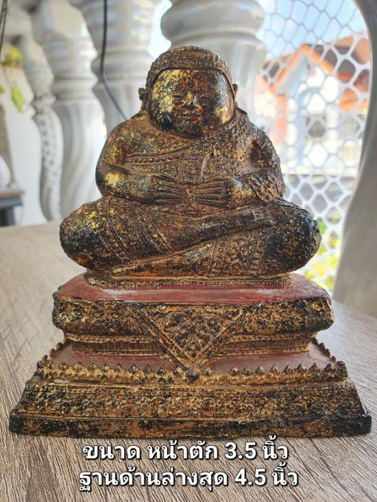 พระบูชาสังกัจจายน์ทรงเครื่อง ก้นดินไทย หน้าตัก 3.5 นิ้ว ฐาน 4.5 นิ้ว #เจ้าของเดิมลงรักปิดทองใหม่ |