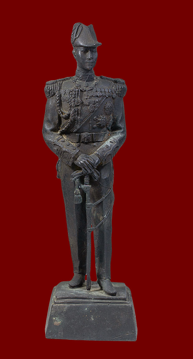 รูปหล่อสมเด็จพระนเรศวรไม่ทราบที่#เบ้าตาซ้ายหล่อไม่เต็ม ฐาน 4 นิ้วสูงประมาณ 12 นิ้ว |