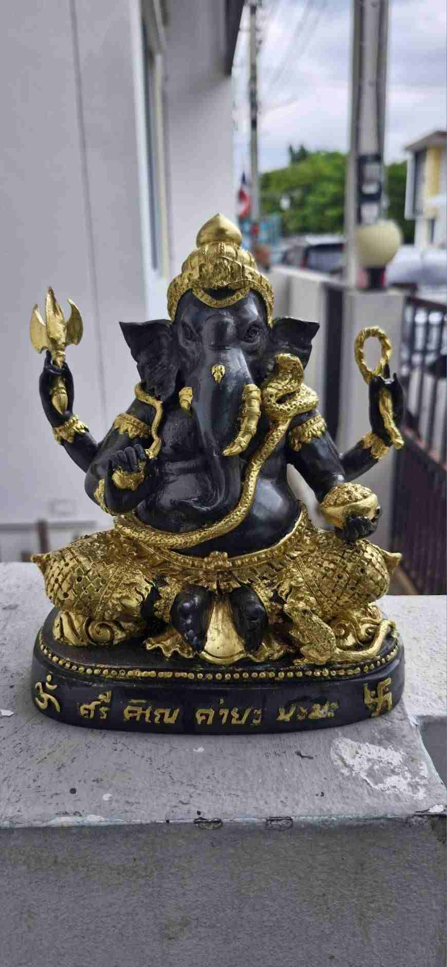 พระพิฆเนศ เนื้อโลหะปิดทองบางส่วน หน้าตัก 5.5 นิ้ว สูง 7 นิ้ว