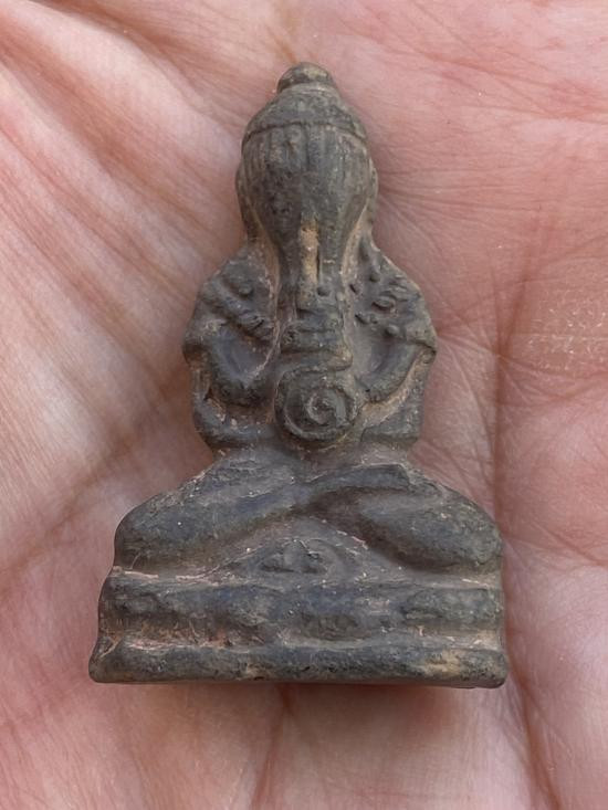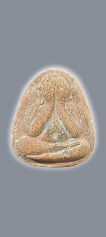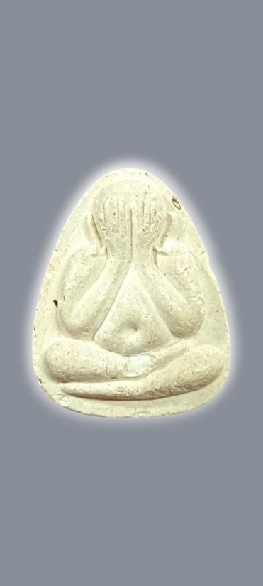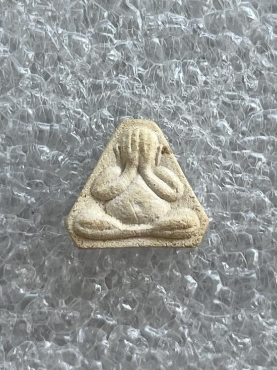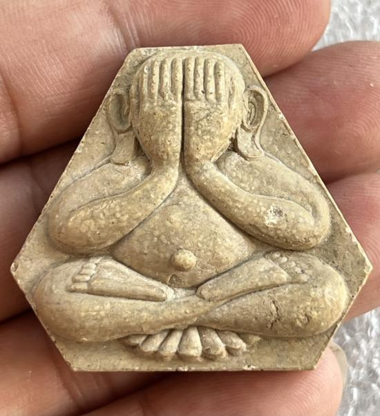 พระปิดตาเนื้อผง พิมพ์หกเหลี่ยม หลังเรียบ ไม่ทราบที่