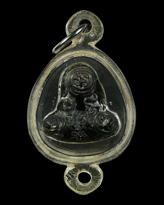***พระปิดตา เนื้อผงจุ่มรักหนา สภาพใช้ เก่า แท้ไม่ทราบที่ครับ*** |
