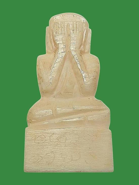 พระปิดตา ไม้แกะ ใต้ฐานมีจาร ชอบเชิญ |