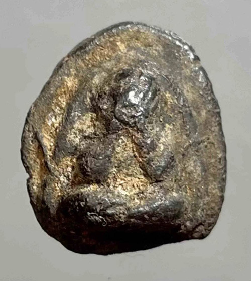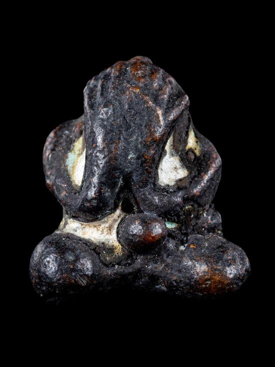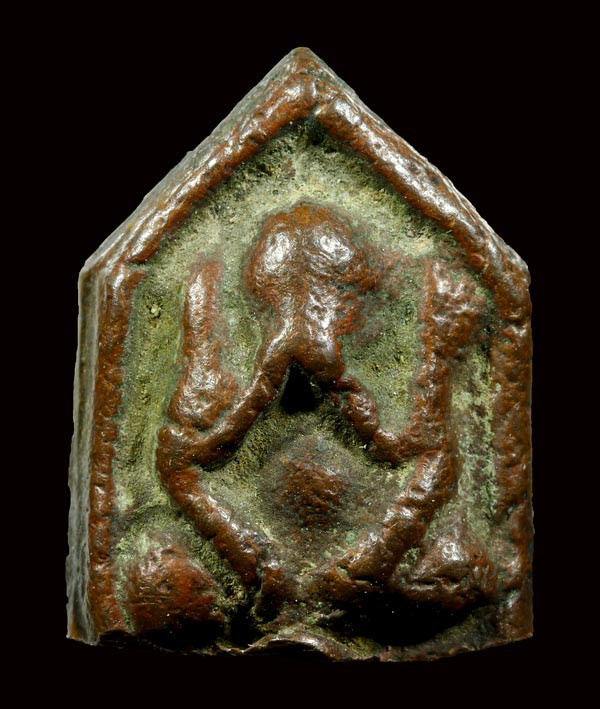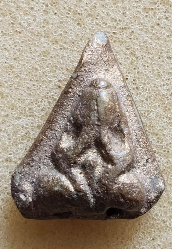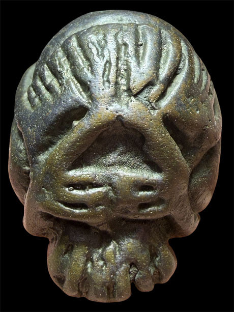พระปิดตาเนื้อโลหะทรงแปลกๆไม่ทราบที่ครับ |