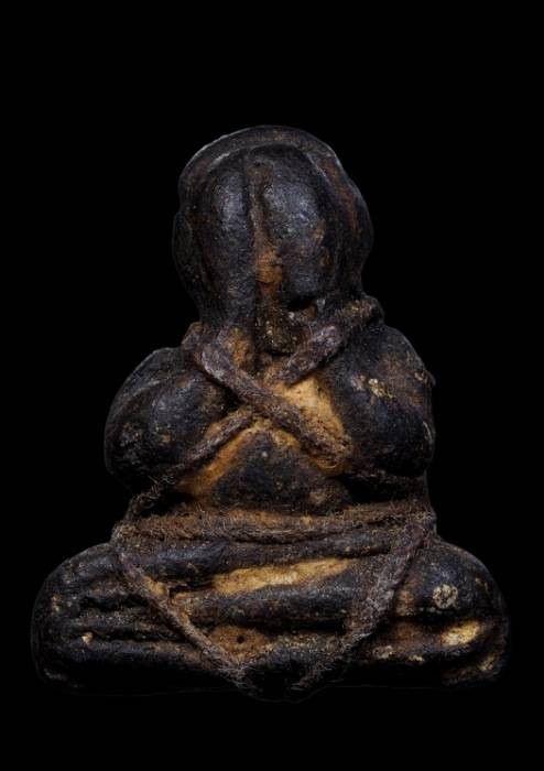 พระปิดตาเนื้อผงคลุกรักเก่าผูกสายสิญจน์พันไม่ทราบที่ |