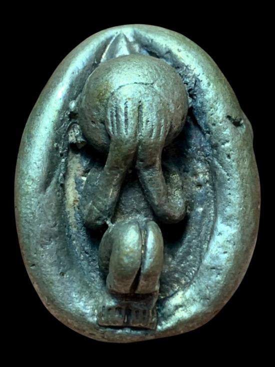 พระปิดตาเนื้อโลหะ ไม่ทราบที่ครับ |