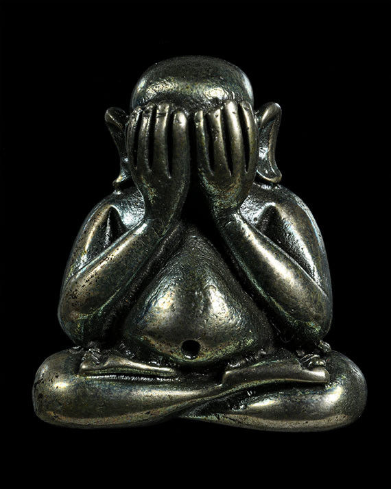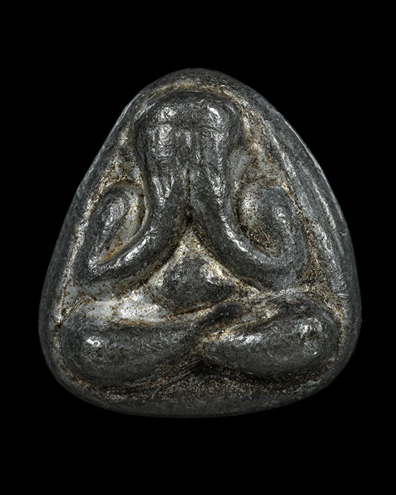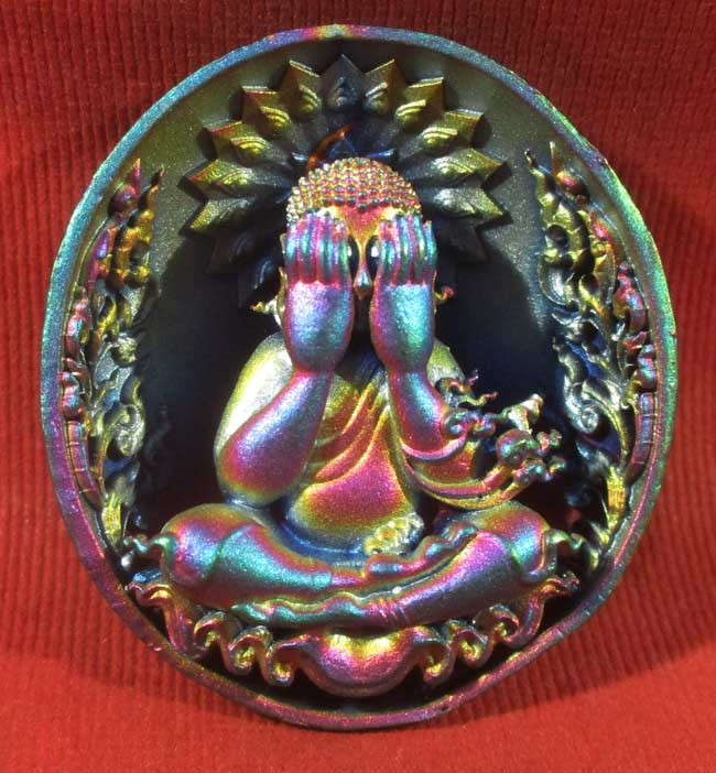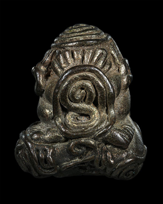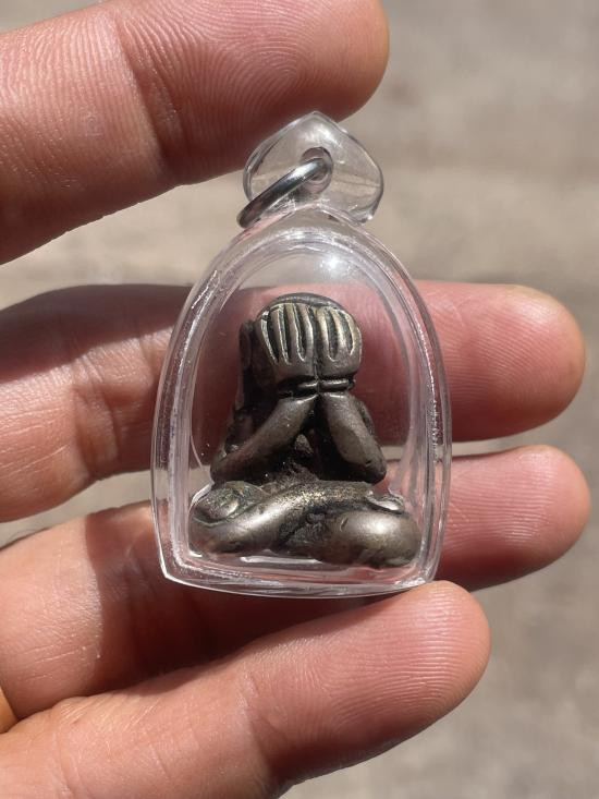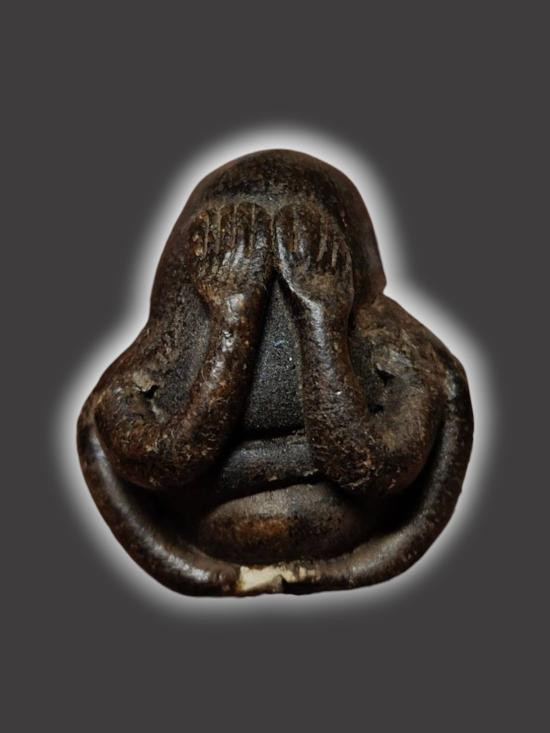พระปิดตาปุ้มปุ้ยเนื้อโลหะ ตอกโค๊ต ไม่ทราบที่ครับ. |