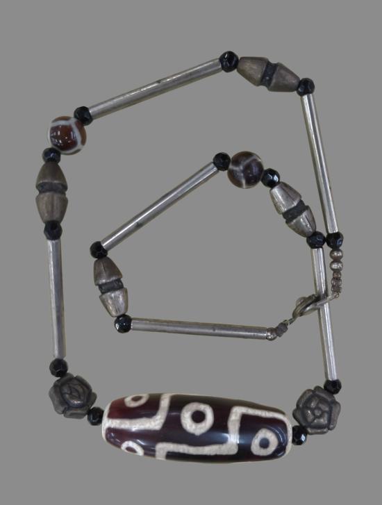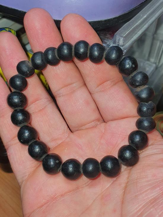 เม็ดประคำเนื้อผงคลุกรักจุ่มรักแกนตะกั่วเก่ามีอายุร้อยกว่าปี ขนาดเม็ดใหญ่ 1.4 ซม.จำนวน5เม็ด ไม่ยัดวัดไม่ทราบที่ |