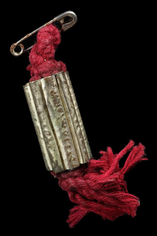 วัดใจ**เครื่องราง ตะกรุดเนื้อฝาบาตรเก่า*{ จารมือ }*ยาว 4.นิ้ว ไม่ทราบที่ พร้อมเชือกคาด....เดิมๆครับ |