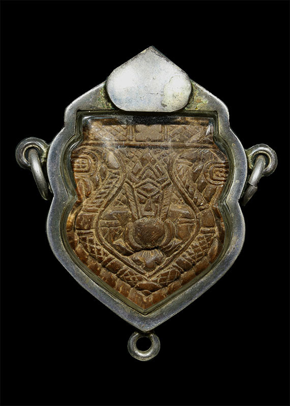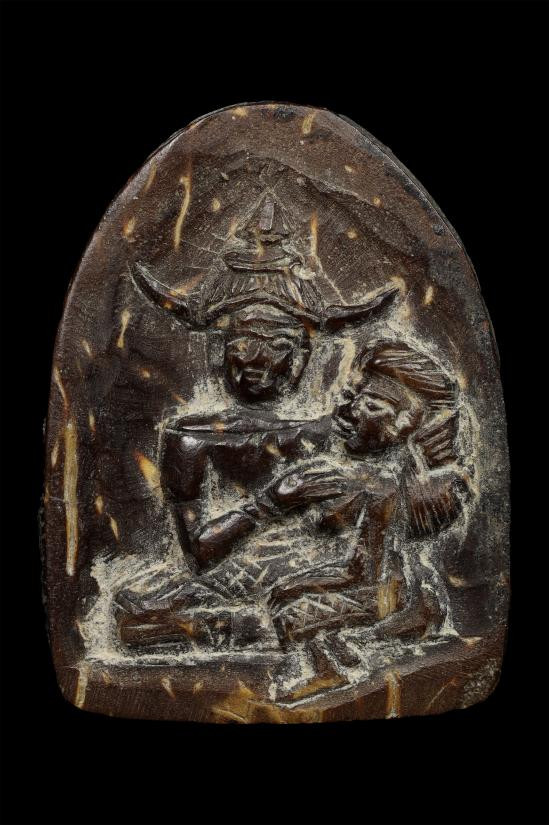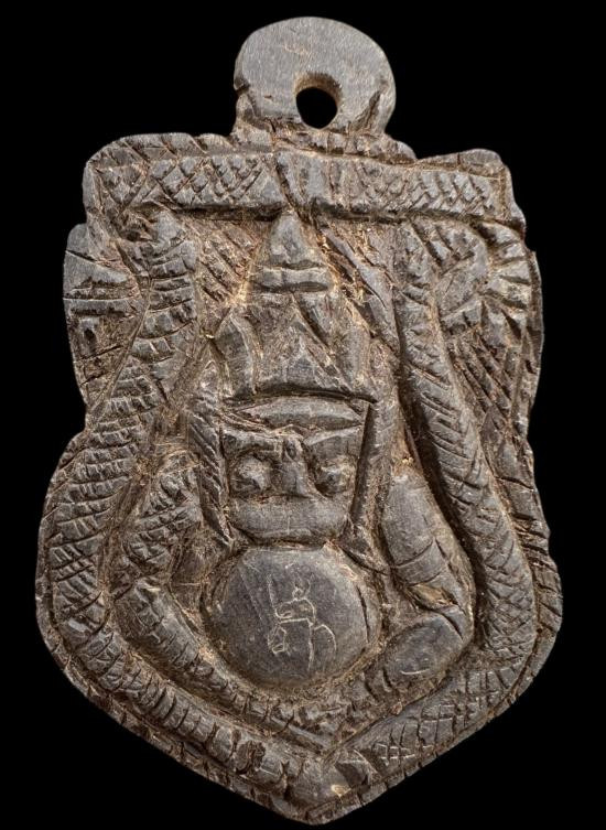 (วัดใจ!) กะลาแกะ พระราหูอมจันทร์ (ไม่ทราบที่) ลายแกะสวยคมชัด เลี่ยมกรอบอย่างดี - [R154] |