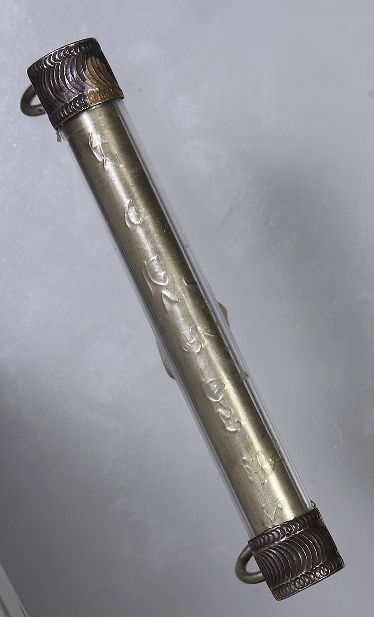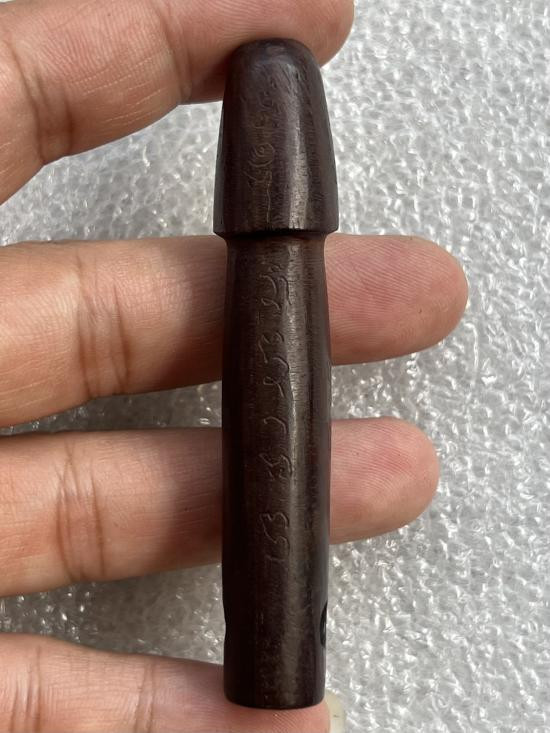 ตะกรุดทองแดงไม่ทราบที่ ยาวประมาณ2.5นิ้ว ส่องข้างในมีรอยจาร เคาะเดึยวแดง 100 |
