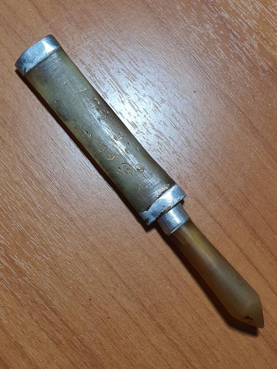 วัดใจ**เครื่องราง ตะกรุดเนื้องาแกะเก่า ยาว 1.5นิ้ว ไม่ทราบที่.....ตามสภาพครับ |