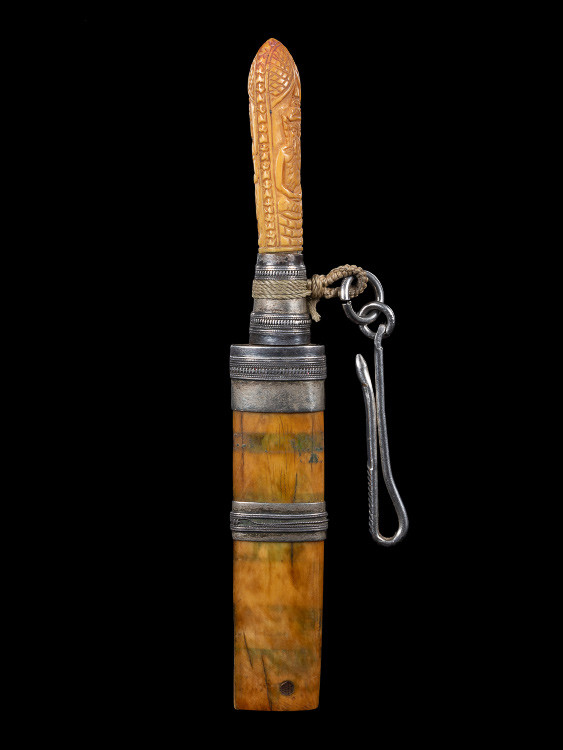 มีดงานกระดูกไม่ทราบที่มีจาร พระเหมาบ้านมา |