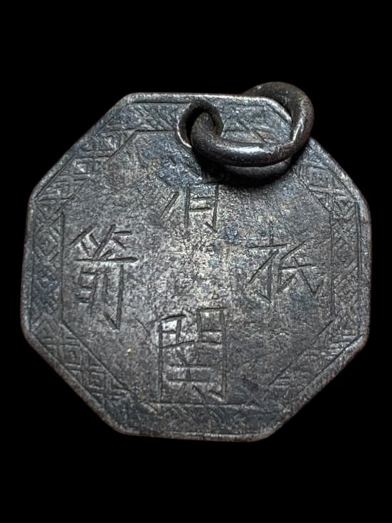 เหรียญแปดเหลี่ยม เนื้อเงิน ห่วงเชื่อม ภาษาจีนเก่า |