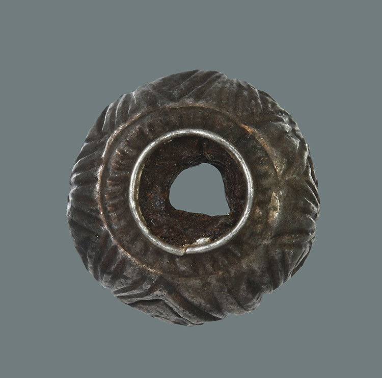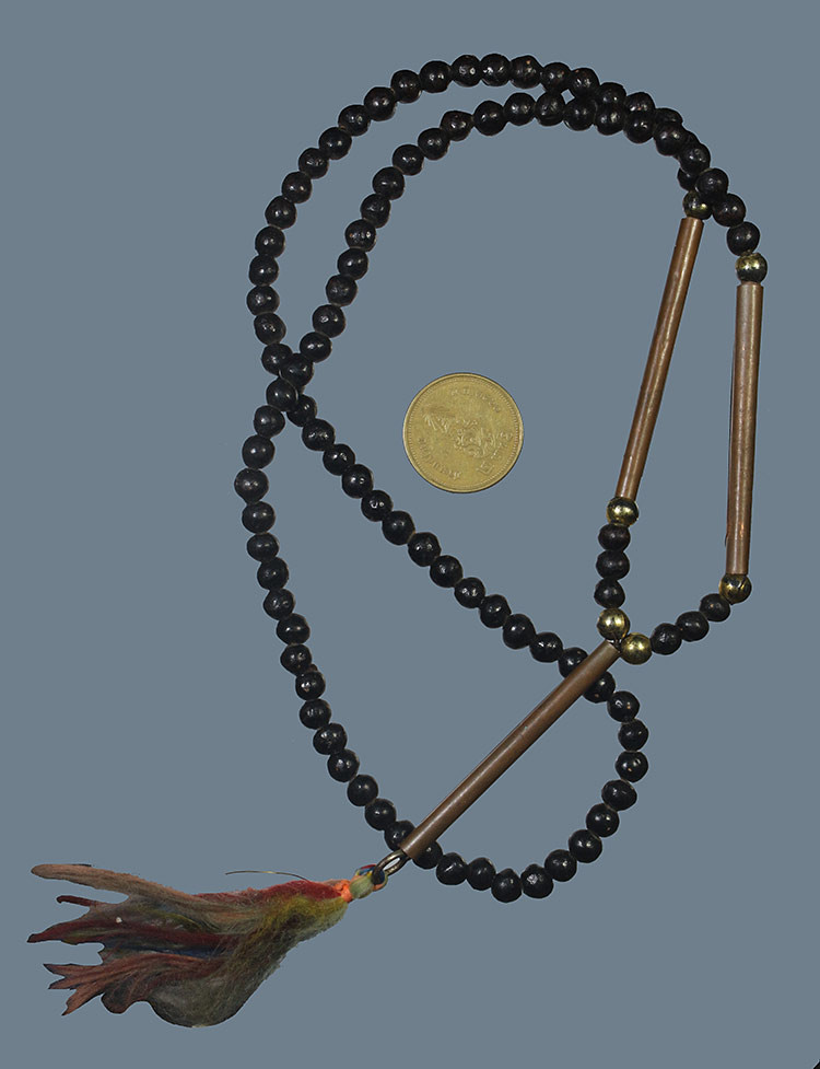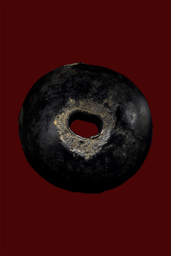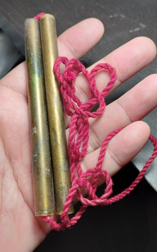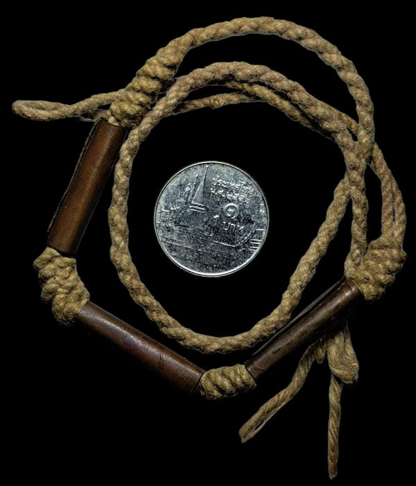 ตะกรุดลงรักตรงกลางเป็นรูร้อยเชือดเก่ามากไม่ทราบที่ |
