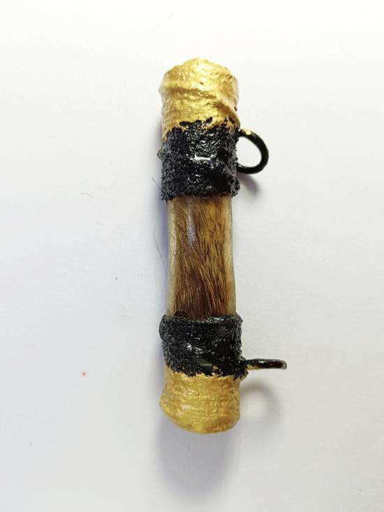 ตะกรุดใบลานพิสมรถักเชือกจุ่มรักลูกค่อนข้างใหญ่สวยเดิม |