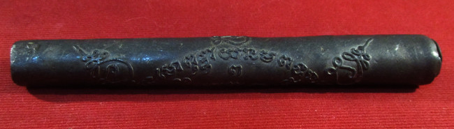 วัดใจ ตะกรุดเนื้อตะกั่ว ยาวประมาณ 5 cm. มีตอกโค๊ต ไม่ทราบทึ่ |