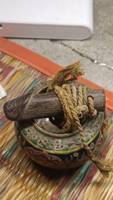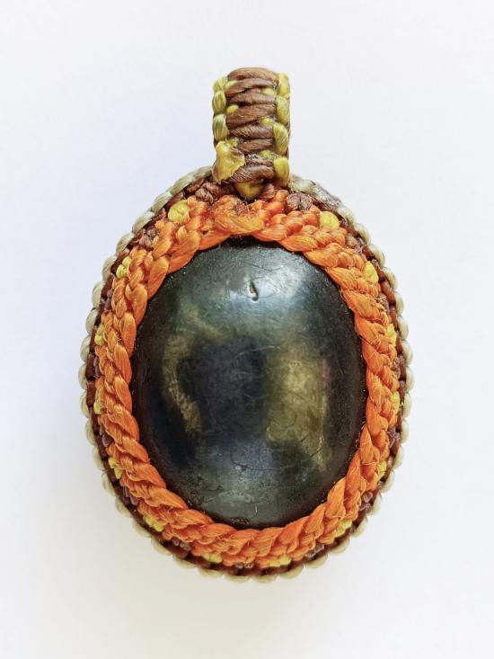 ตะกรุดใบลาน เม็ดเล็ก ถักเชือกลงรัก เก่าๆ มันๆ ไม่ทราบที่คับ |