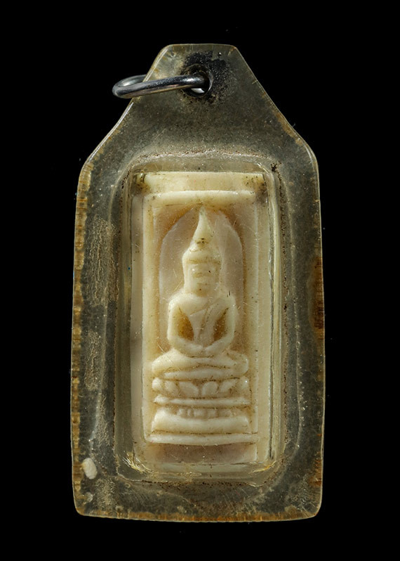 เครื่องรางเก่าเลี่ยมพลาสติกไม่ทราบที่ |