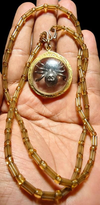 //เคาะแดง//เบี้ยแก้ฝังตะกรุดตะกั่วจารพร้อมเลี่ยม ไม่ทราบที่ครับ |