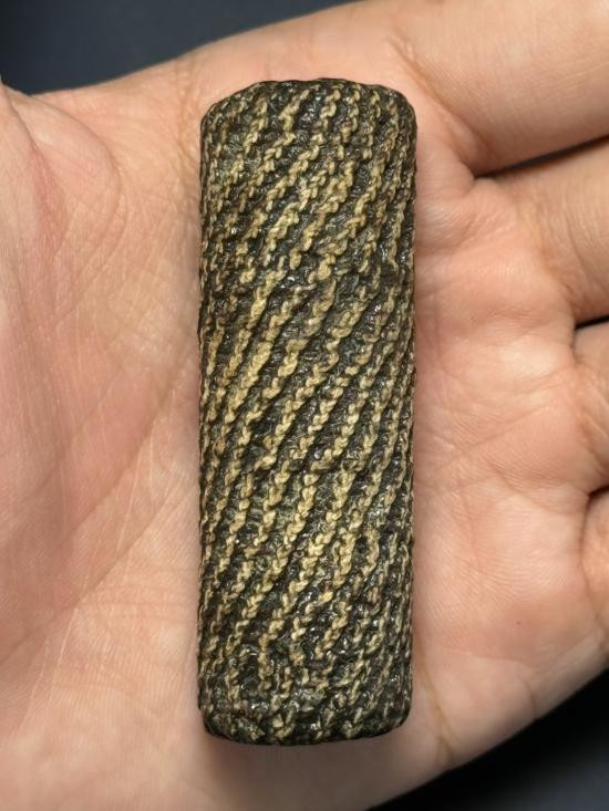 ** วัดใจเคาะเดียวแดงไปเลย ** ตะกรุดถักเชือกจุ่มรัก เนื้อตะกั่ว เก่ามีอายุ ไม่ทราบที่สร้าง ขนาด 4 นิ้ว |