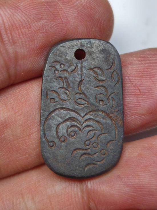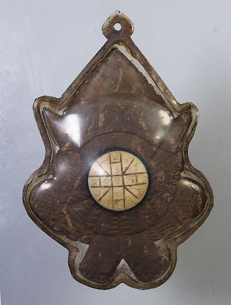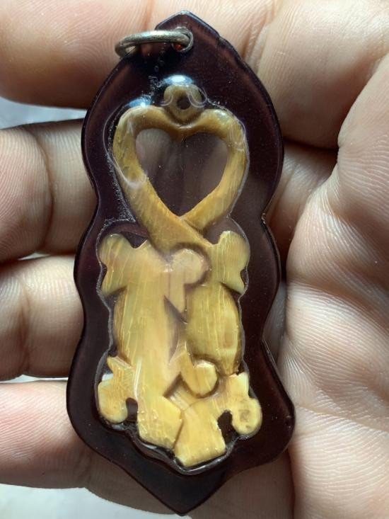 วัดใจ**เครื่องราง กะลาแกะราหู มีงาตรงกลาง มีรอยจาร เลี่ยมเก่า ใม่ทราบที่ ตามสภาพครับ |