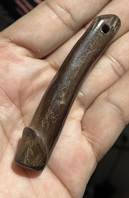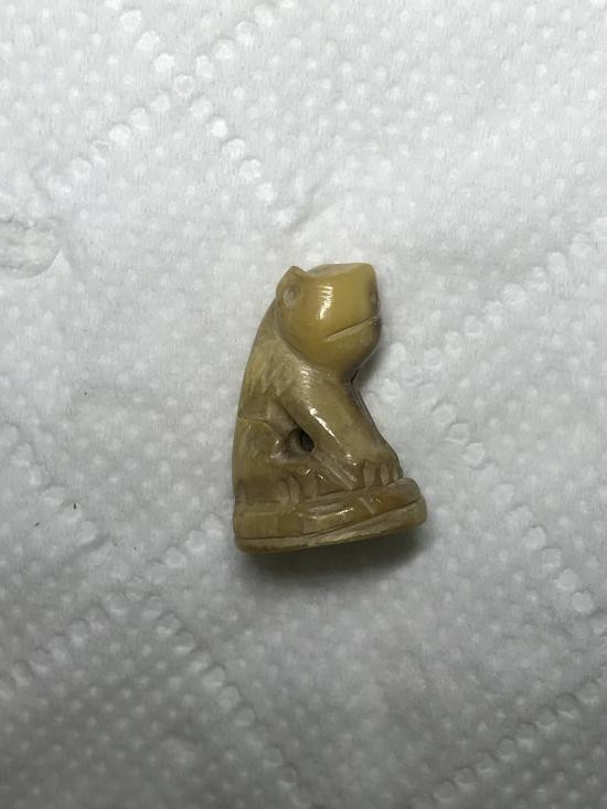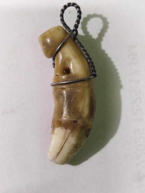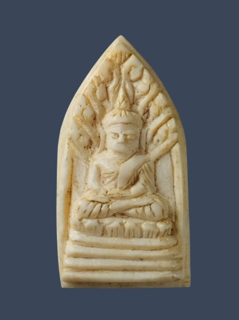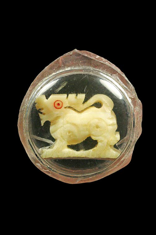 ปิดตาแกะ(ไม่ทราบเป็นงาหรือเขาหรือกระดูก) หลังมีจาร เก่าเก็บมีอายุ |