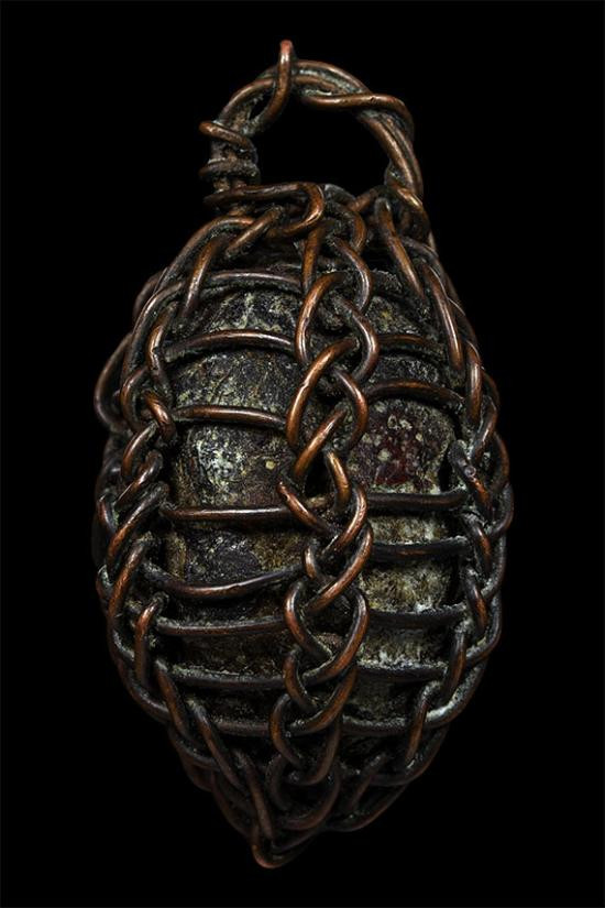 วัดใจ**เครื่องราง เม็ดประคำเนื้อผงยาหุ้มเงินโบราณแกะลายเก่า ไม่ทราบที่....ตามสภาพครับ |