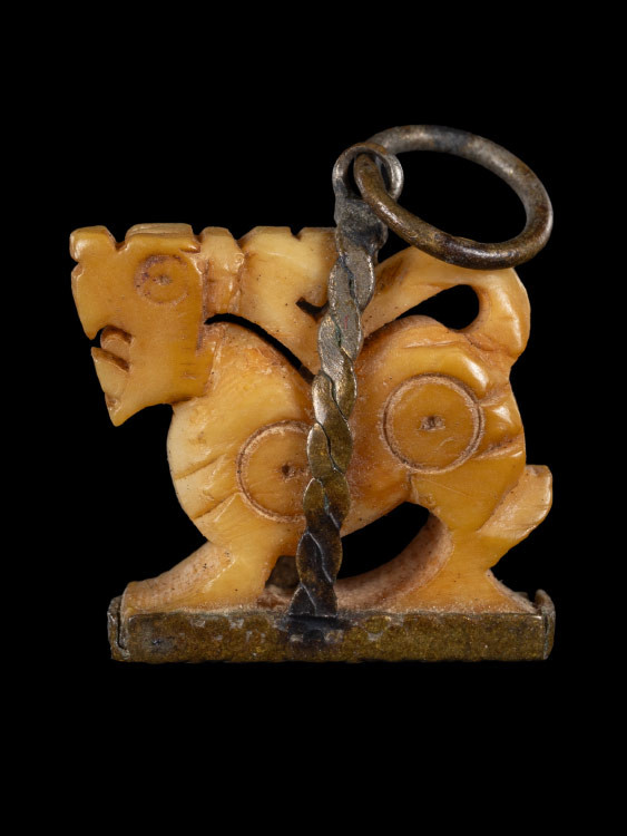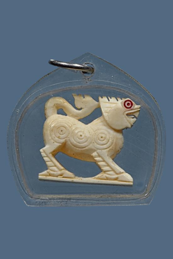 สิงห์งาแกะ3ขวัญแผงคอ2ชั้น ศิลป์สวยมันส์ เก่าจัด ขนาด2ซม. |