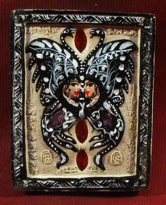 พญาการะเวก เนื้อผงฝังตะกรุด ลงรักปิดทอง ไม่ทราบสำนัก |
