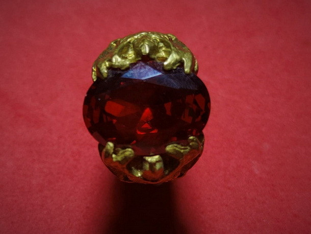 สิงห์งาแกะฝังตาพลอยแดง ขนาดความกว้าง2.5ซม.ความสูง 2.0ซม |