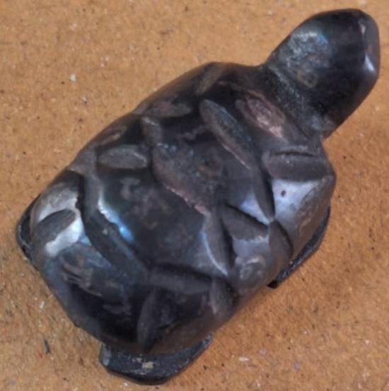 แร่เหล็กน้ำพี้ แกะสลักเปนเต่า มีจารยันต์ ขนาดหัวหาง 1นิ้ว ไม่ทราบที่. วัดใจ |
