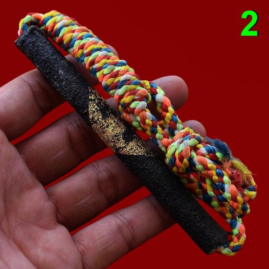 ( 2 ) ตะกรุดถักเชือก ลงรัก ปิดทอง ร้อยเชือกเจ็ดสี ทำบุญมาจำชื่อวัดที่สร้างไม่ได้ สภาพพระตามรูปที่ลงทุกประการ (ขนาดยาวประมาณ 5 นิ้ว) |