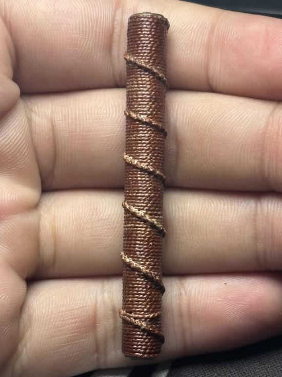 ตะกรุดถักเชือกไม่ทราบที่ ไม่เก่ามาก ยาว5นิ้ว สภาพสวย ส่องข้างในเห็นรอยจารชัดเจน เคาะเดียวแดง |