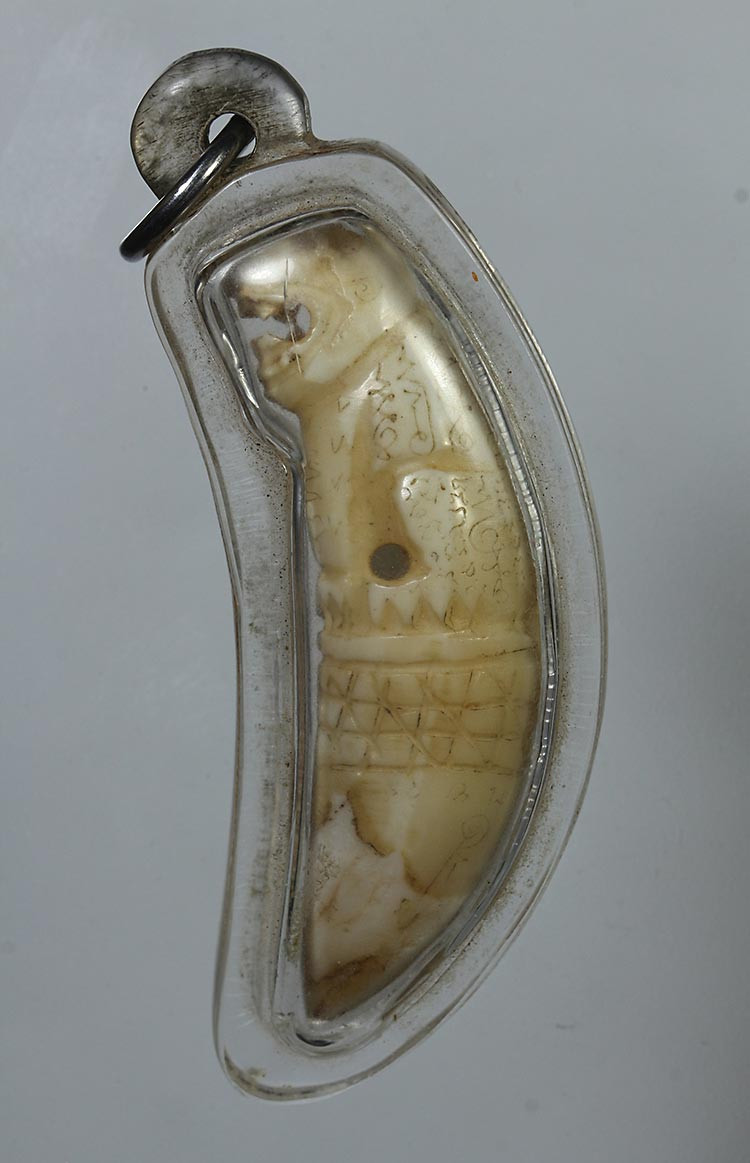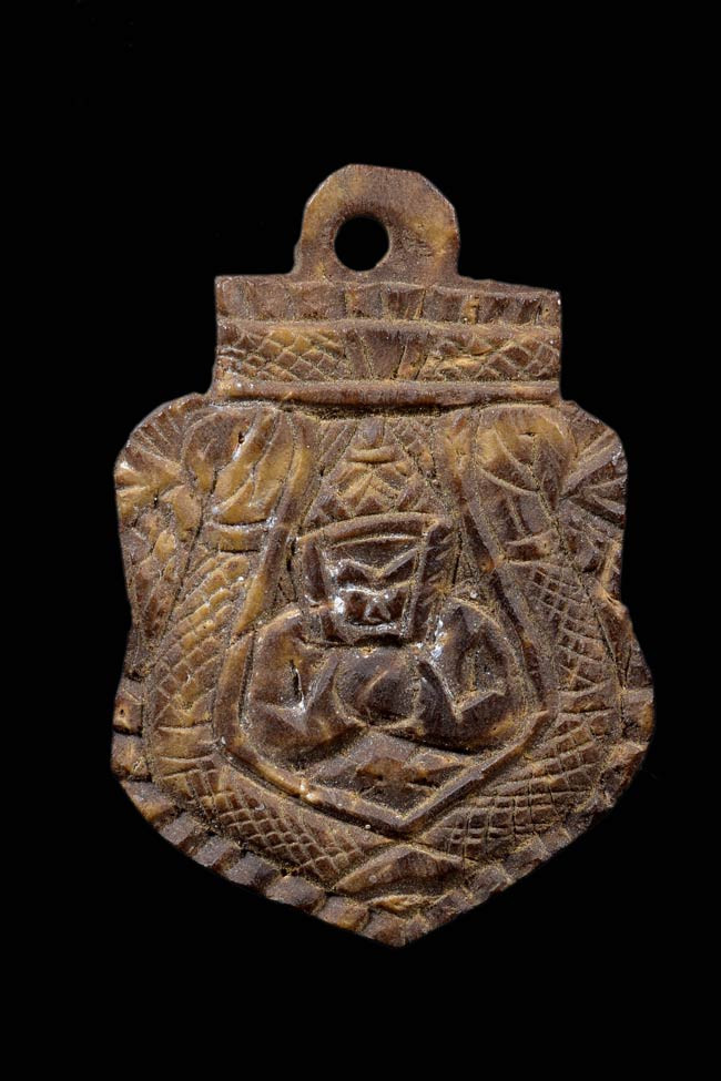 กระดูกแกะรูปเหมือนพระพุทธ ไม่ทราบที่ เลี่ยมเก่า |