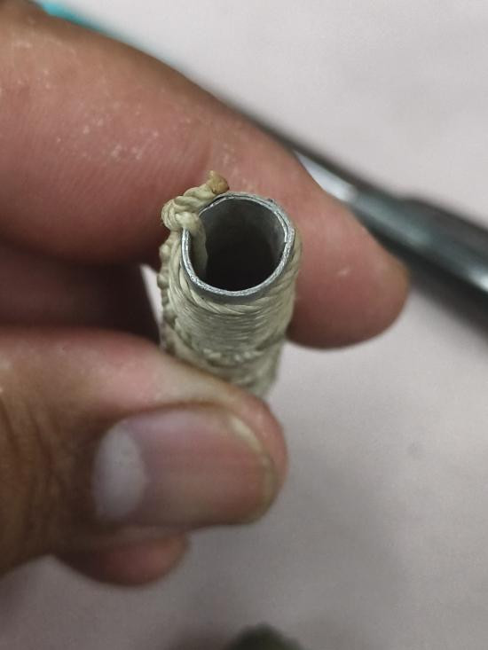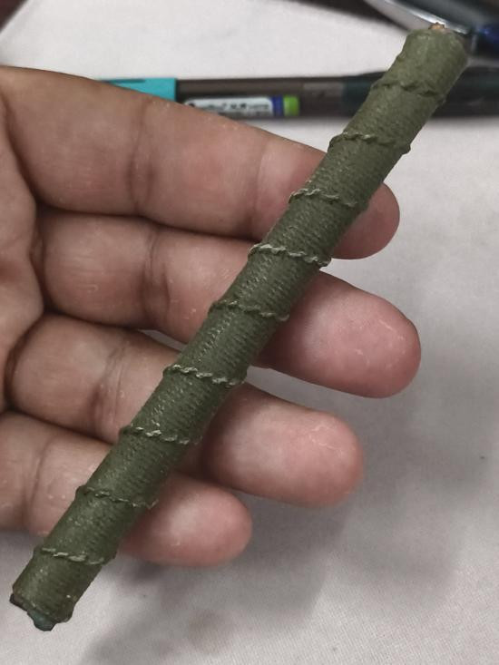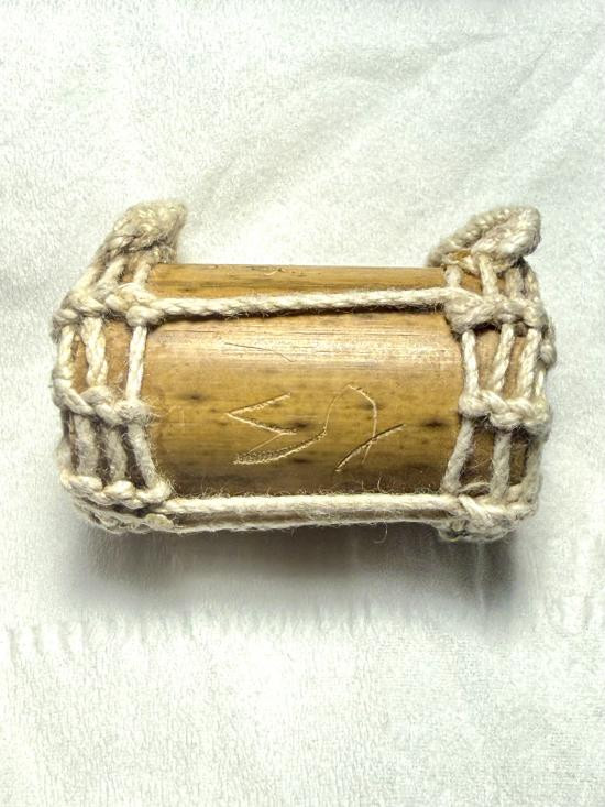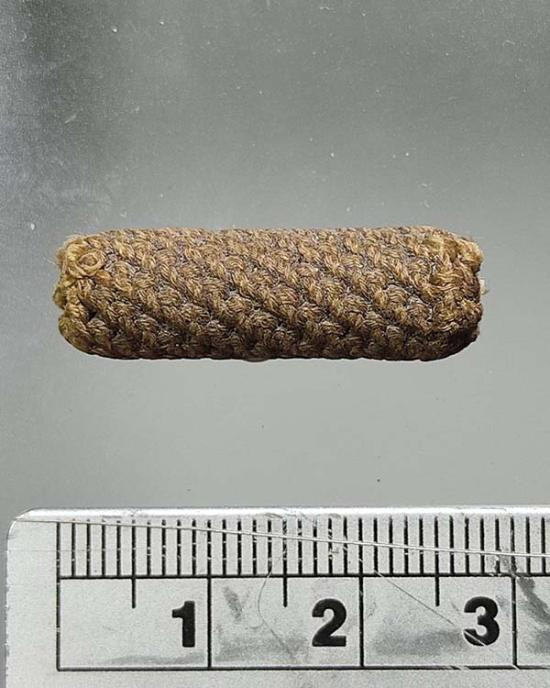 ตะกรุดไม้ ถักเชือกมีรอยจาร ไม่ทราบที่ครับ |