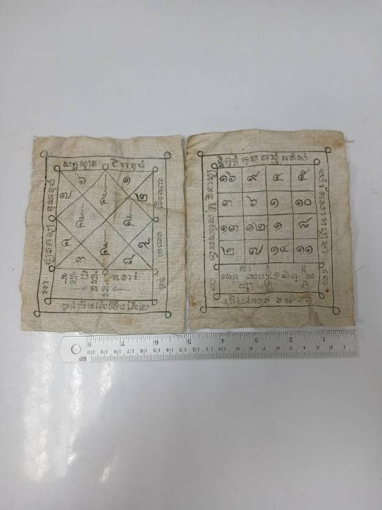 ผ้ายันต์ ไม่ทราบที่ จารยันต์ด้วยมือ เนื้อผ้าดูเก่า ครับ (พระบ้าน ครับ) |