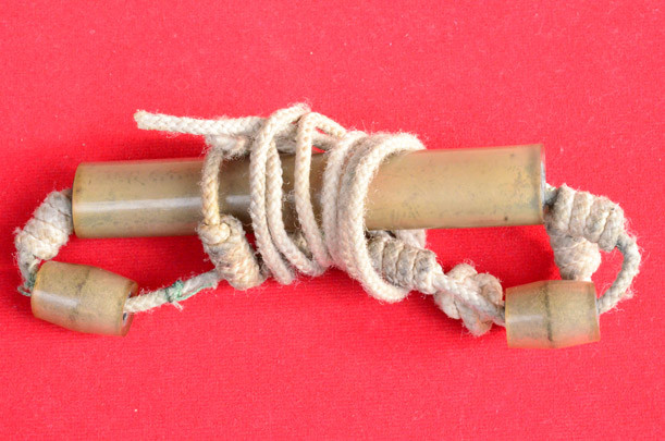 ตะกรุดโทน ถักเชือก เนื้อตะกั่ว และเนื้อทองแดง เก่าไม่ทราบที่ครับ |