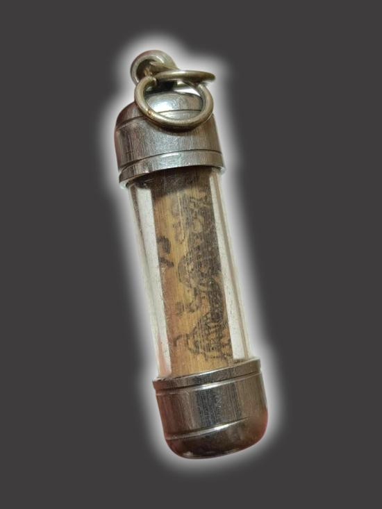 วัดใจ**เครื่องราง ลูกสะกดบุเงิน แกะลาย ไม่ทราบที่ ...ตามสภาพครับ |