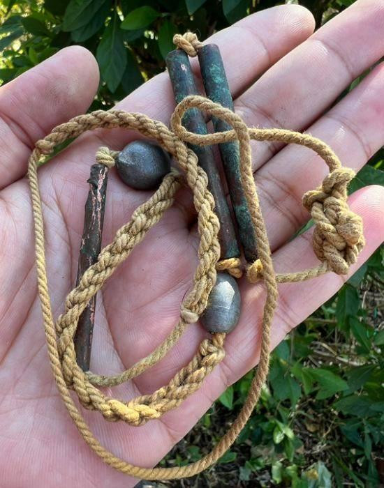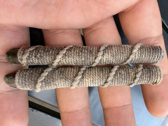 A6729.เครื่องรางตะกรุดเก่า พันเชือก ยาว 2 นิ้ว ไม่ทราบที่ เคาะเดียวเเดง |