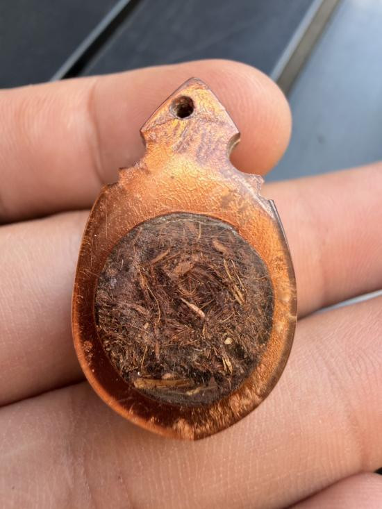 A6730.เครื่องรางไม้ว่านมงคล ไม่ทราบที่ เลี่ยมพร้อมใช้ ความยาวรวมเลี่ยม 1.8 นิ้ว เคาะเดียวเเดง |