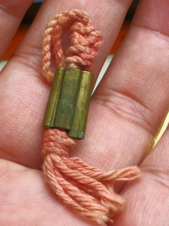 @@ ตะกรุด เชือกถัก ปิดทองและน่าจะทารักมา ยาวประมาณ 4 นิ้ว ไม่ทราบที่ครับ @@ |