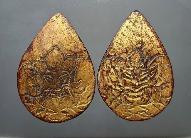 ตะกรุด 2กษัตริย์ (เนื้อทองแดง+ตะกั่ว) ม้วนหลายรอบ ถักเชือกปอ ดูเรียบร้อย เก่าไม่มีกลิ่น สภาพสมบูรณ์ |