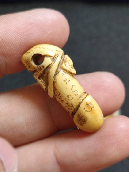 เครื่องรางแกะจากกระดองเต่าเผือก เลี่ยมเก่า ไม่ทราบที่ ราคา 150 บาท ชมดูก่อนครับ |