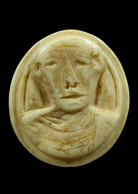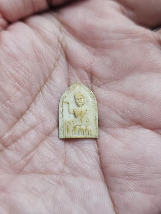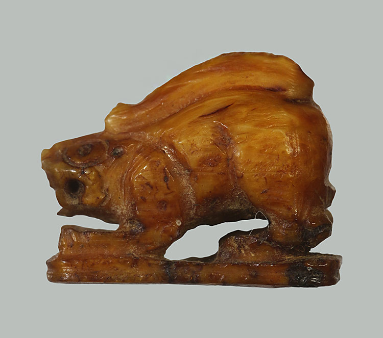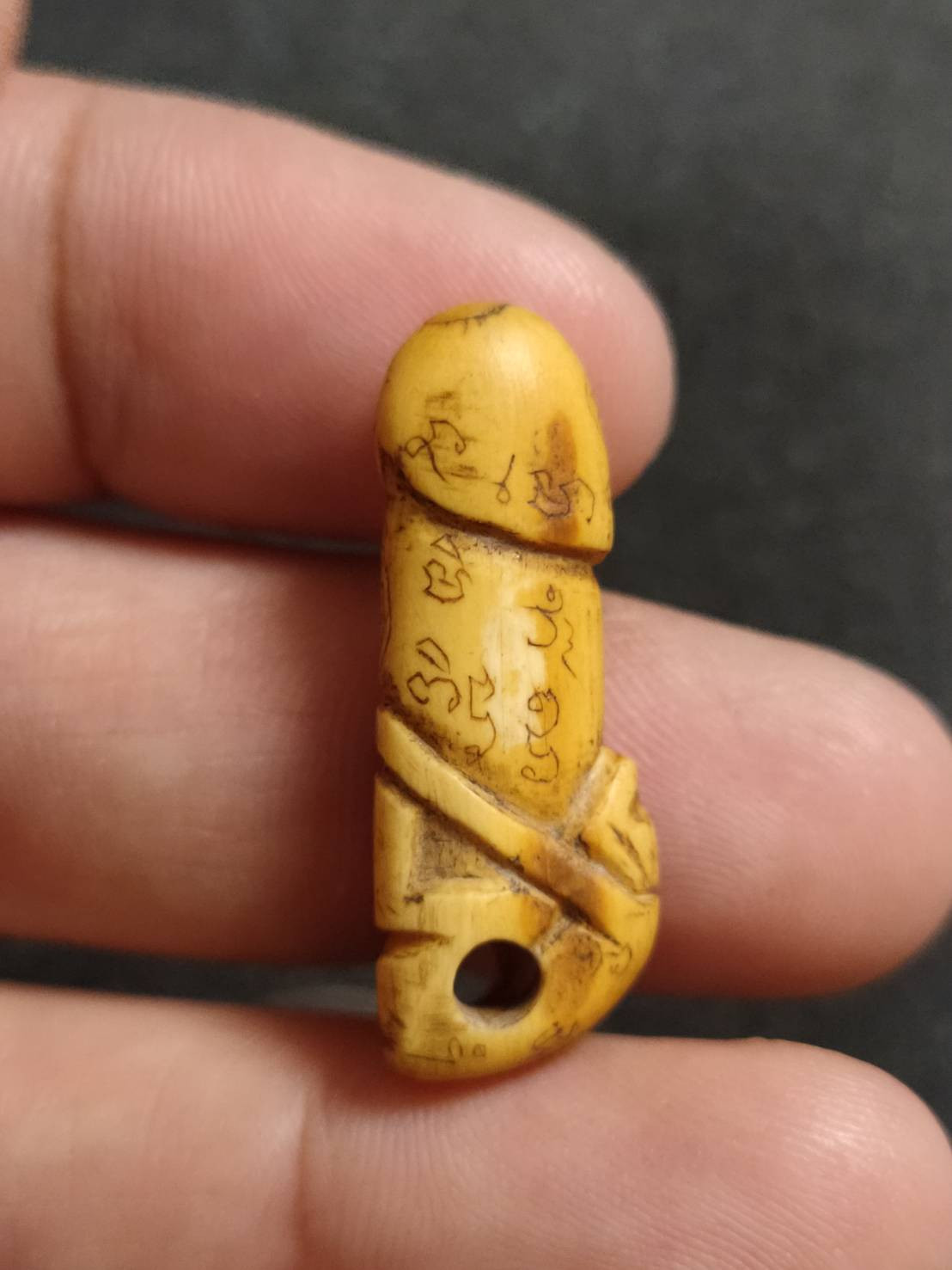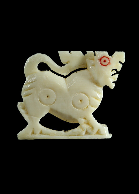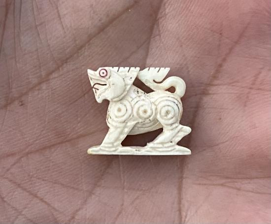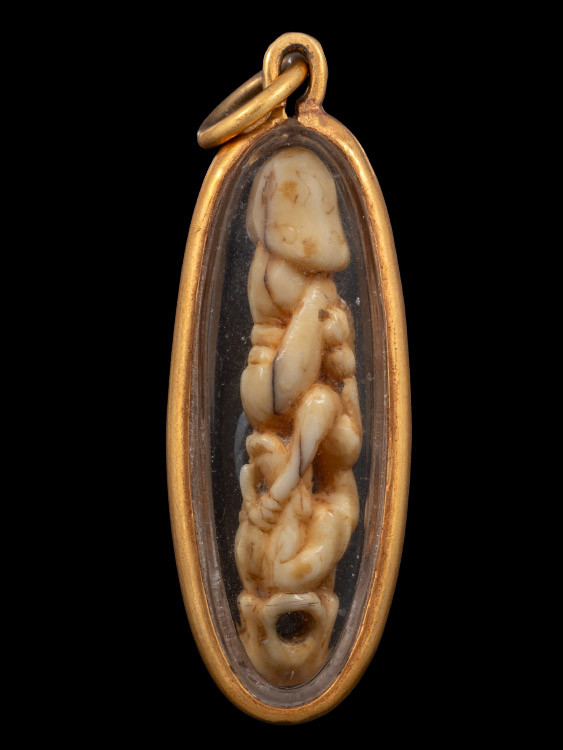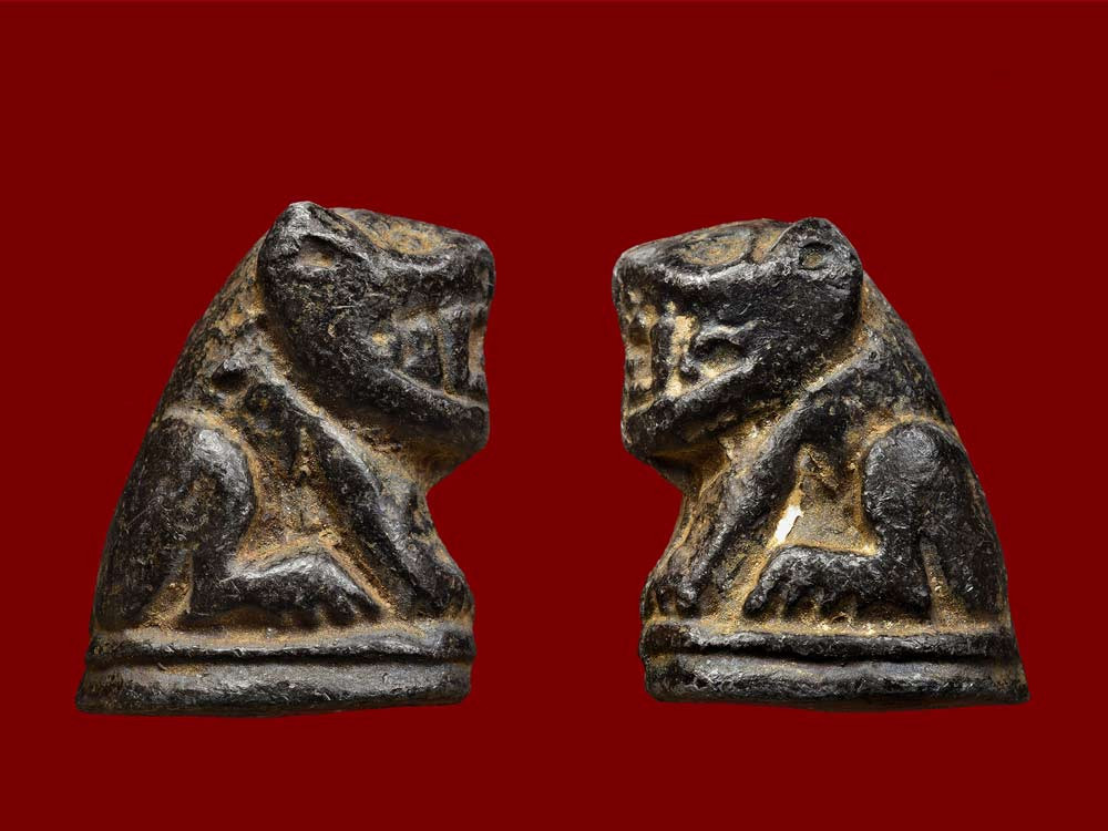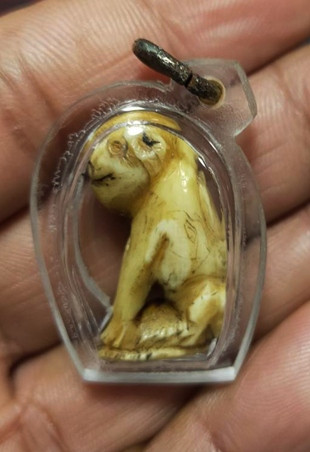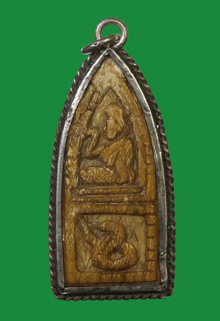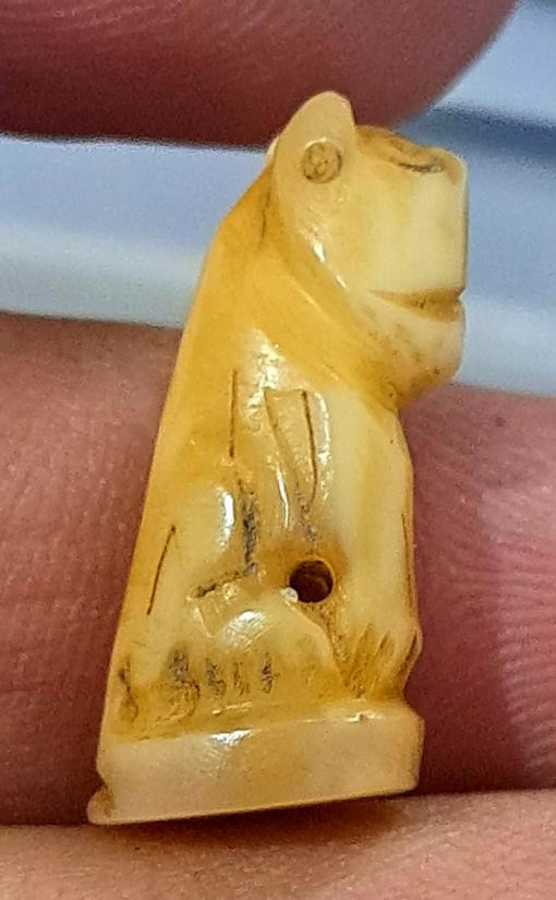 จิ้งจก งาแกะ จารอักขระ เลี่ยมเก่า ไม่ทราบที่ |