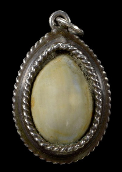 วัดใจ**เครื่องราง งาแกะเก่า เลี่ยมจับเงิน ไม่ทราบที่....ตามสภาพครับ |