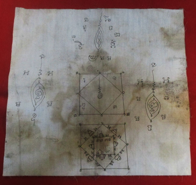 ผ้ายันต์ จารยันต์ด้วยมือ ไม่ทราบที่ เนื้อผ้าดูเก่า ครับ (พระบ้าน ครับ) |