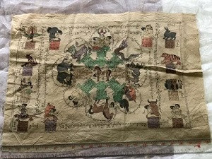 ผ้ายันต์ จีนไม่ทราบที่ ลวดลายสวย เนื้อผ้าดูเก่า ครับ (พระบ้าน ครับ) |