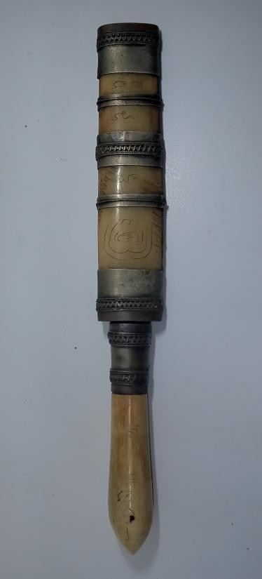 วัดใจ**เครื่องราง มีดหมอเก่า ด้าม+ฝักเนื้อกระดูกกรามช้าง*{ ใบเหล็กน้ำพี้ }*ยาว 4.5นิ้ว ไม่ทราบที่.....ตามสภาพครับ |